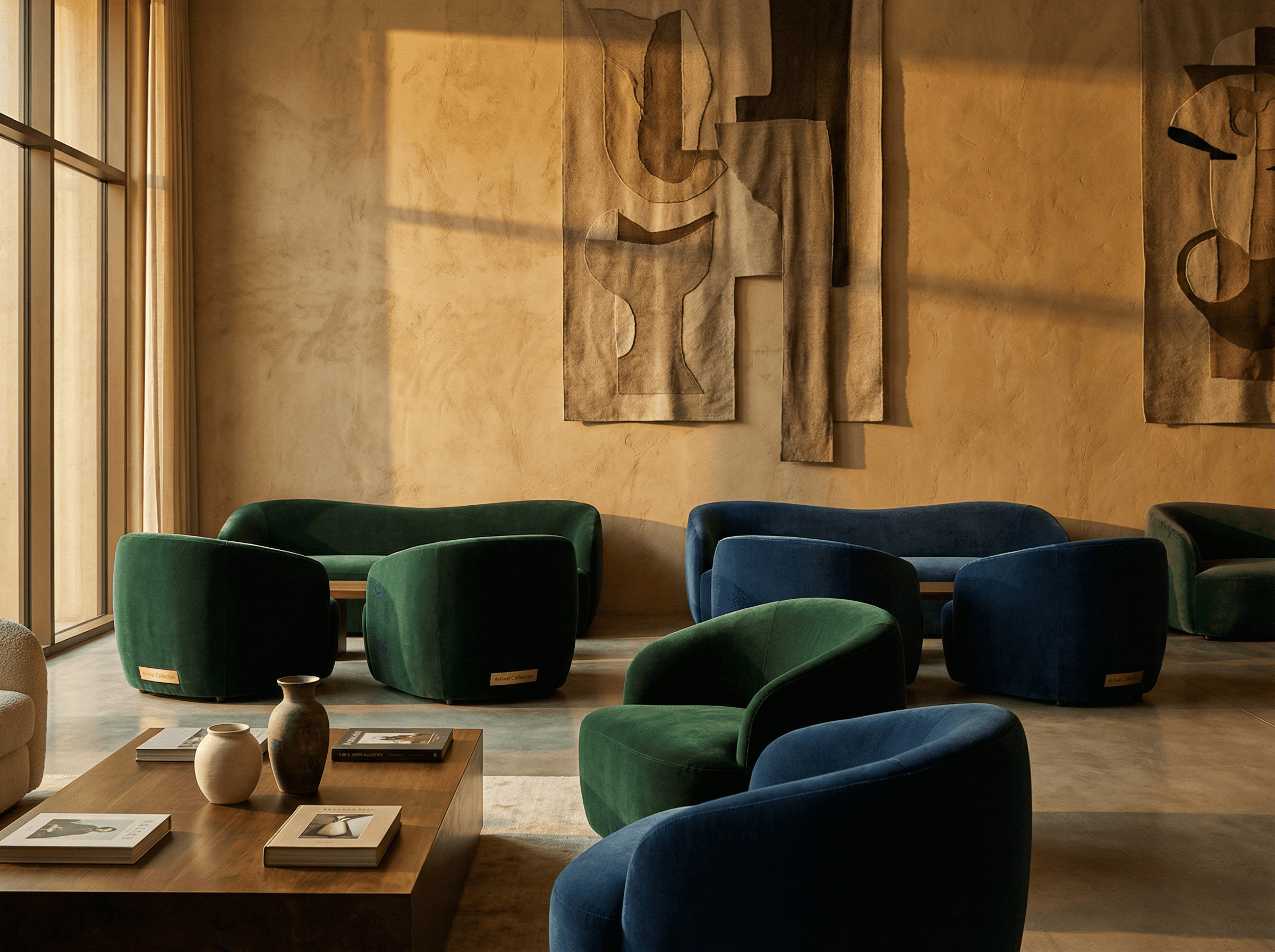 Arrival Collection is a hospitality-scale interior framework designed around material hierarchy and spatial discipline.